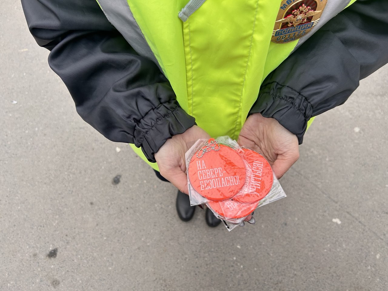 В завершение акции водителям и пешеходам раздали светоотражающие брелоки.
