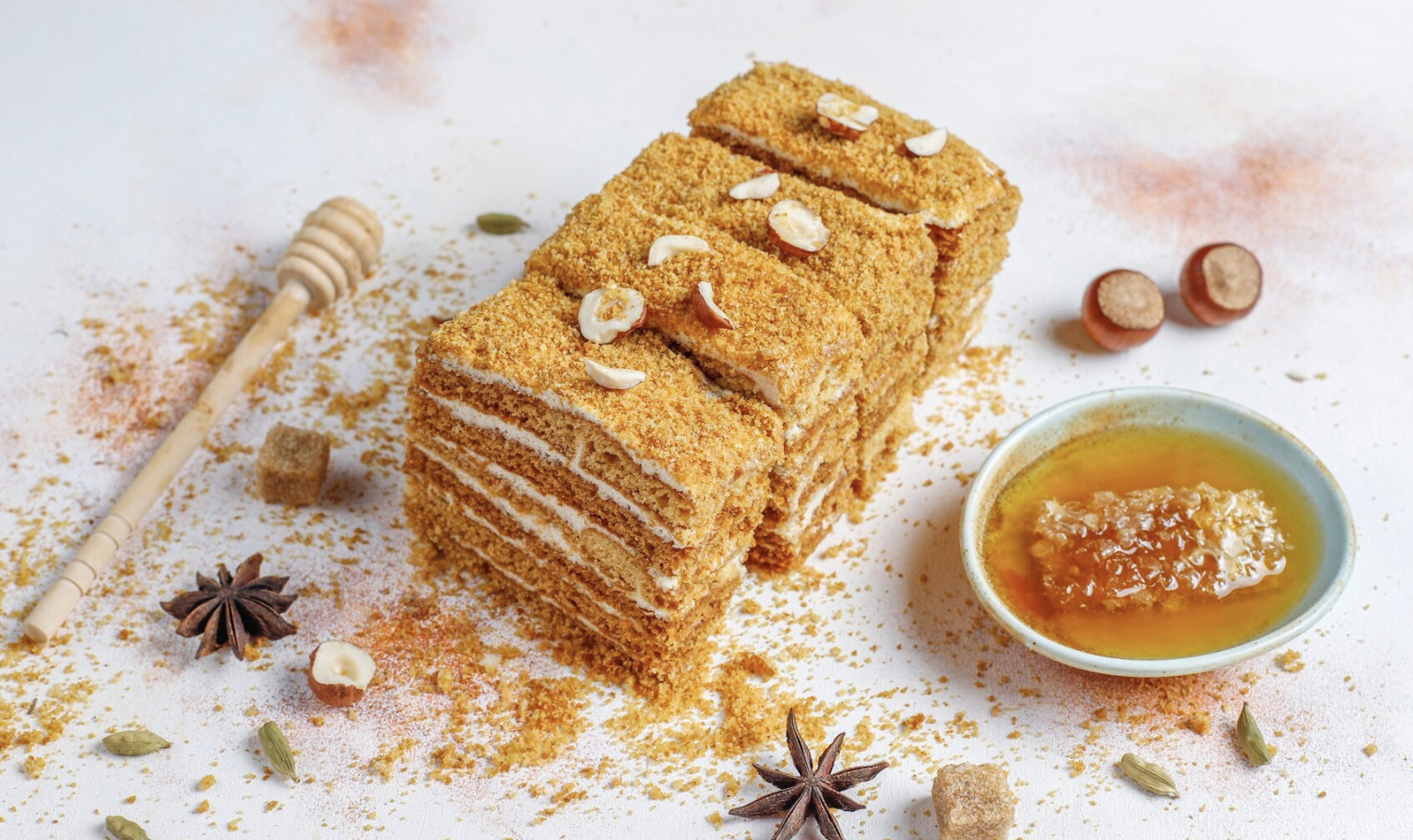 Если вы не мастер в готовке, либо если вы просто не любите тратить много времени на это — такой рецепт точно придётся вам по нраву. Автор канала «Вкусная история» рассказала про свой супербыстрый рецепт медовика, который получается ничуть не хуже, чем покупной из кондитерских.