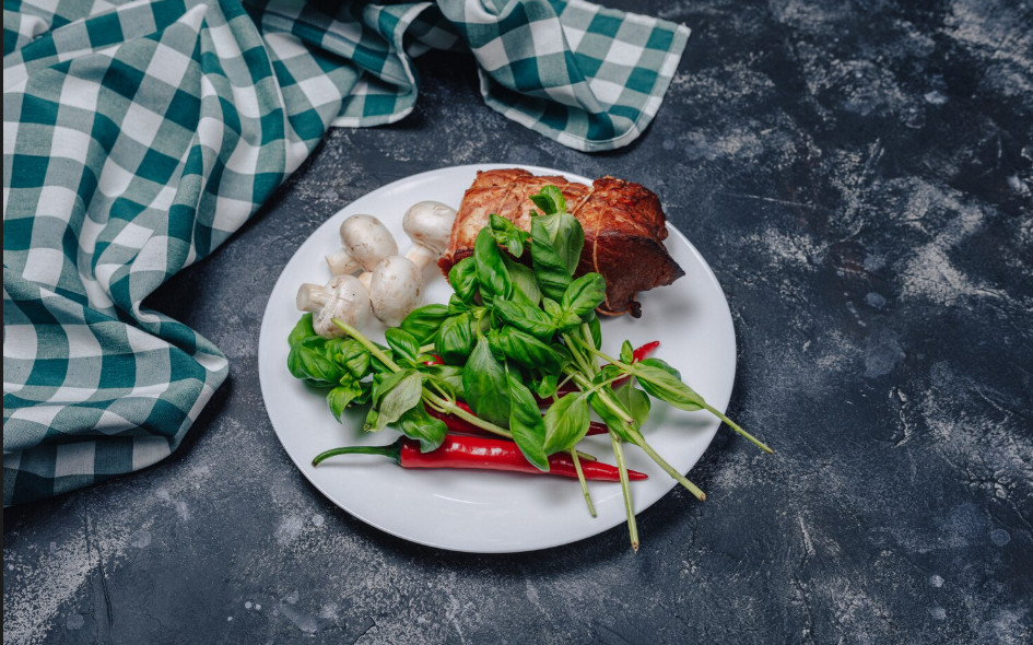 Клетчатки много не бывает — половину тарелки должны составлять овощи и зелень. Это ваш вклад в здоровое пищеварение, которое обеспечивает усваивание полезных веществ и витаминов.
