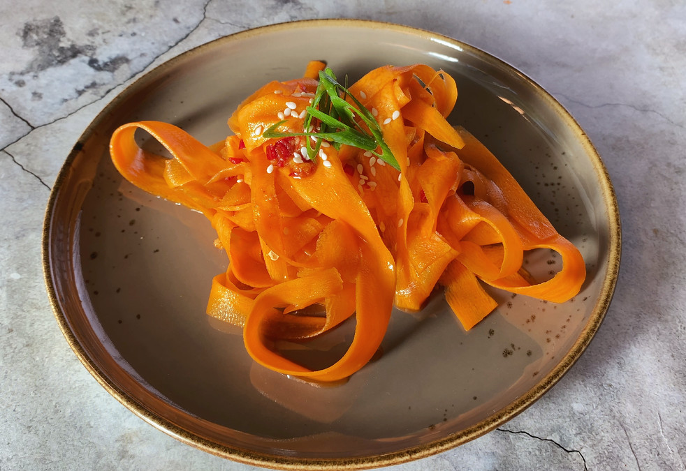 Портал «Yumchief», специализирующийся на не совсем обычных и привычных нам рецептах, представляет один из таковых — лёгкую закуску или гарнир (кто как любит) из моркови, исполненную в азиатском стиле. Блюдо отличается простотой приготовления, пикантным вкусом и минимальным количеством калорий.
