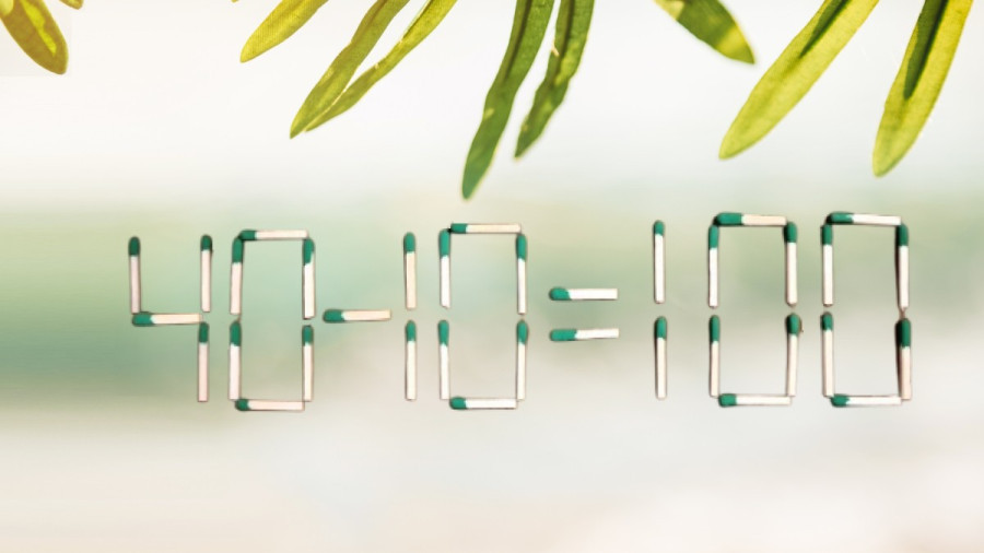 Итак, у нас есть равенство: «40-10=100». Как видите, оно абсолютно неверно. Нужно исправить ошибку и переставить лишь одну спичку.