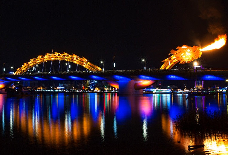 Драконий мост во Вьетнаме выглядит так, будто сошёл со страниц аниме. Спроектированный как слияние чистой инженерии и театрального представления, мост буквально извергает огонь и воду.