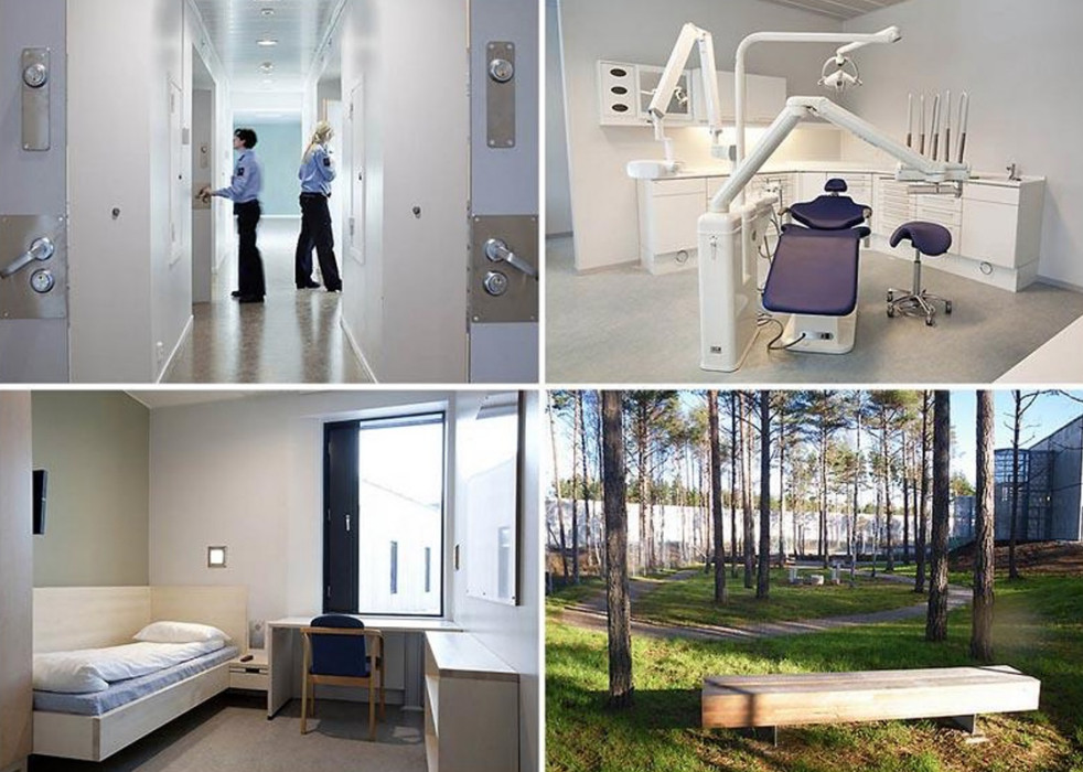 Самая известная тюрьма в этой стране — Халден — внешне больше похожа на дизайнерский кемпинг, чем место заключения. Пребывание в ней имитирует жизнь вне тюрьмы: её обитатели могут заниматься спортом, слушать музыку в салоне или в камерах и общаться с безоружными охранниками без соблюдения субординации.