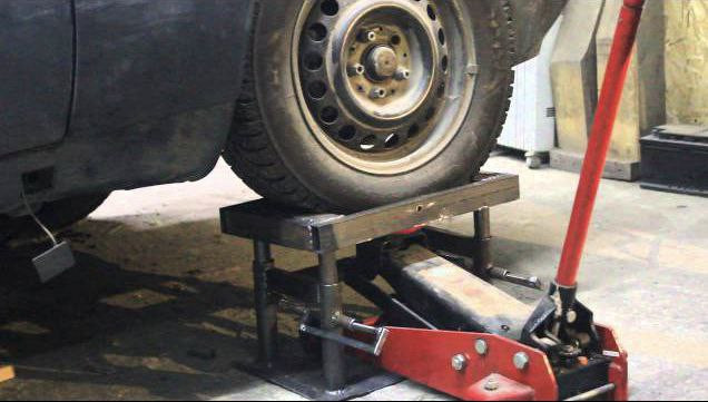 Во-вторых, необходимо подобрать наиболее безопасную, ровную и нескользящую поверхность для установки штатного домкрата. Поэтому держите в багажнике противоскользящий коврик или дощечку. Подкатной можно использовать на асфальте, плитке гаража и на земле.
