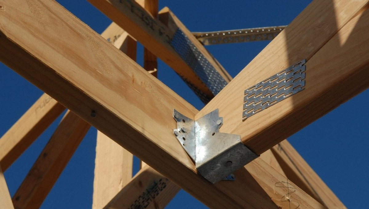 Причина в том, что крыша — это парус, и от порыва ветра он пойдёт не просто на сдвиг, а на отрыв: то есть, кроме как в сторону, ещё и вверх. Уголок в этой ситуации просто беспомощен: металл тонкий, саморезы на срезе не держат, и весь узел превращается в слабое звено.