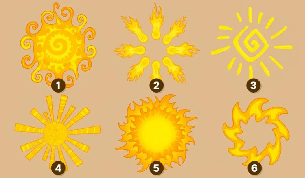 Узнайте, как именно вы проявляете свою жизнерадостность, с помощью визуального теста. На рисунке вы видите разные солнца. Какое из них вам особенно греет душу? Доверьтесь интуиции, чтобы услышать свое подсознание.